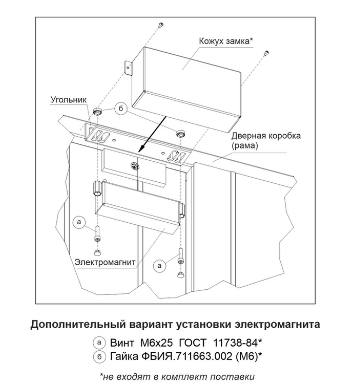 - крепление винтом М6 (со стороны электромагнита). Для монтажа необходима спец.гайка ФБИЯ.711663.002 - 2шт., винт М6х25 - 2шт. (в комплект поставки не входят, заказываются дополнительно).