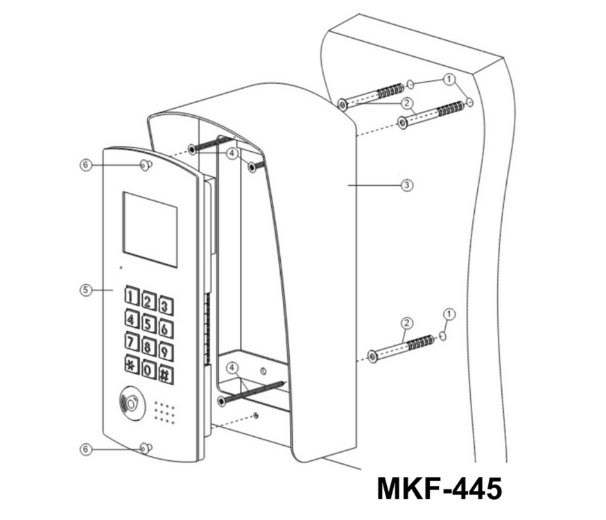 Для защиты блока вызова от атмосферных осадков при врезном монтаже рекомендуется использовать монтажный комплект МK-445;