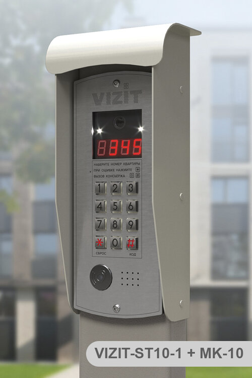 При установке блока вызова на стойку домофонную VIZIT-ST10-1 рекомендуется использовать монтажный комплект МK-10.