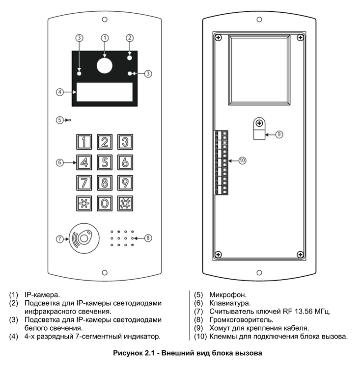 Блок вызова домофона БВД-445FCBE2 используется для совместной работы с БУД-430М(S), -485(P,M), -482х
