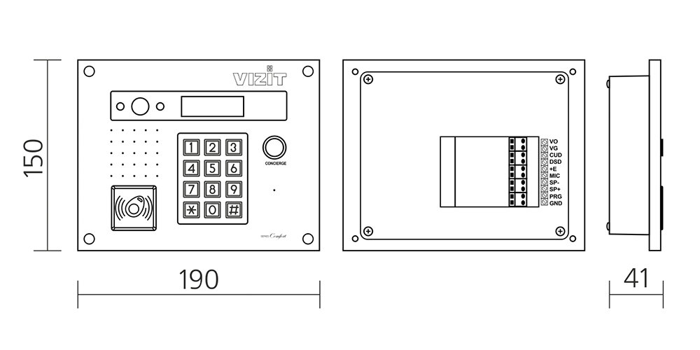 - Встроенный считыватель ключей VIZIT-RF3 (поддержка VIZIT-RF7)