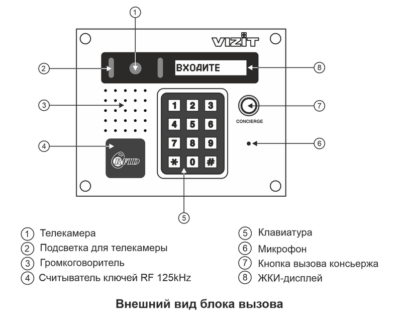 Блок вызова домофона БВД-432RCB используется совместно с блоками управления БУД-430M(S), -482(RD), -485(M,P) как составная часть многоквартирного домофона VIZIT