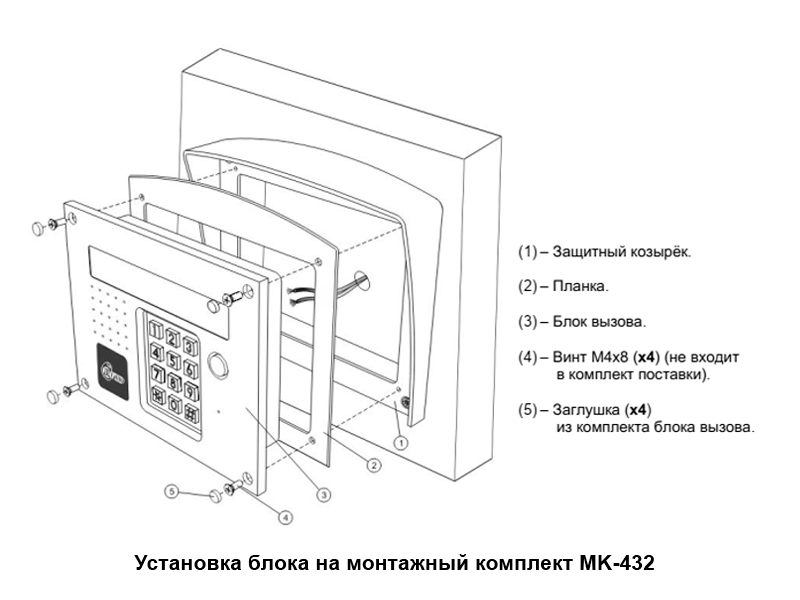 Для защиты блока вызова от атмосферных осадков при врезном монтаже рекомендуется использовать монтажный комплект МK-432, MK-733;