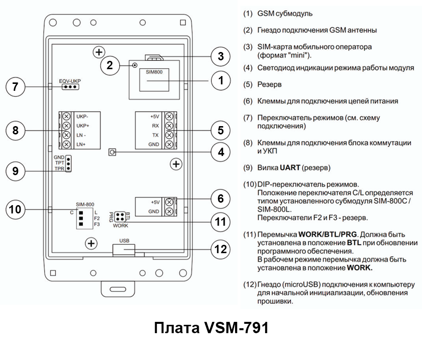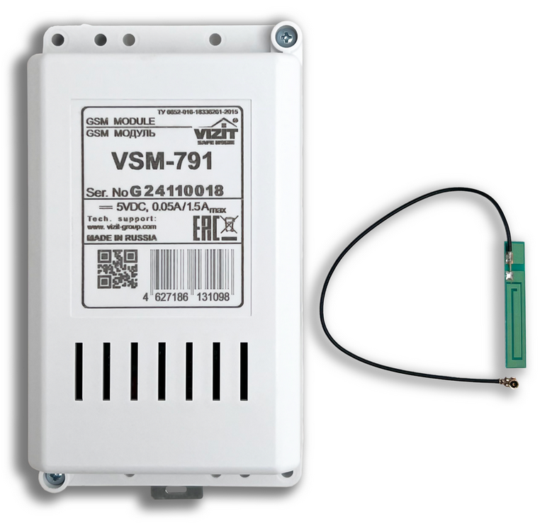 GSM Модуль VSM-791 предназначен для использования в составе многоабонентских или индивидуальных домофонов VIZIT вместо или совместно с абонентским устройством для дублирования вызова с домофона на мобильный телефон абонента данной квартиры.