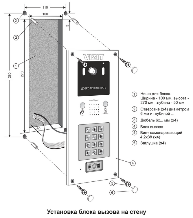 Для защиты блока вызова от атмосферных осадков при врезном монтаже рекомендуется использовать монтажный комплект МК-740;