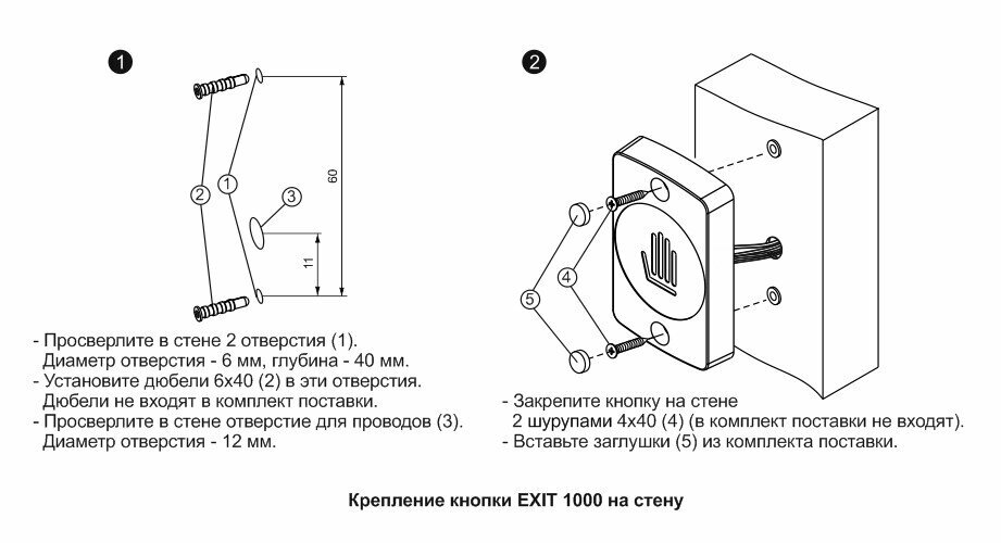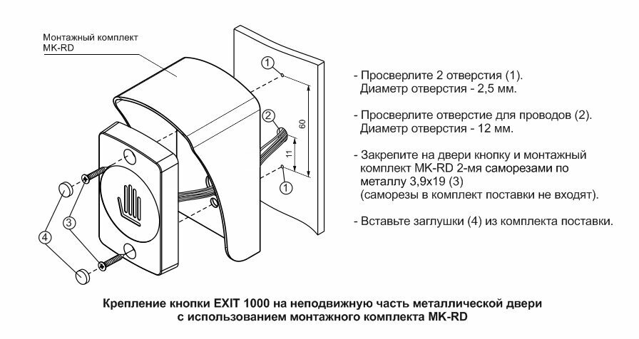 При установке Кнопки EXIT 1000 вне помещения, для защиты от атмосферных осадков рекомендуется использовать монтажный комплект МK-RD.