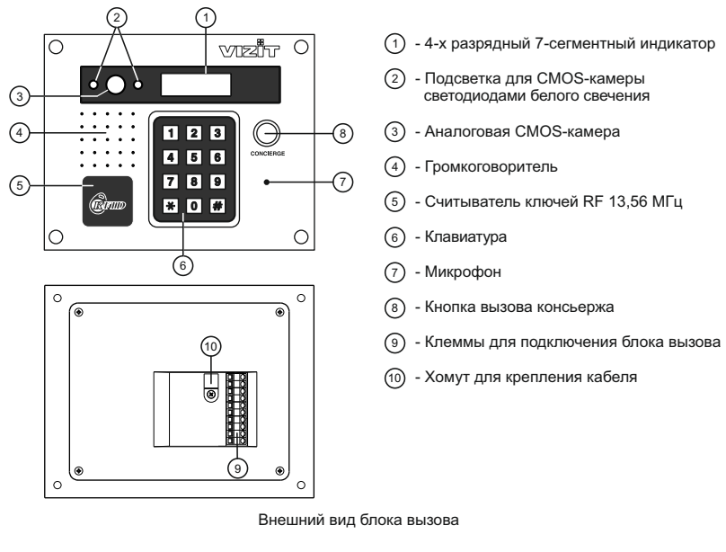 Блок вызова БВД-435FCB используется для совместной работы с БУД-302х, -430х, -482х, -485х как составная часть многоквартирного домофона VIZIT