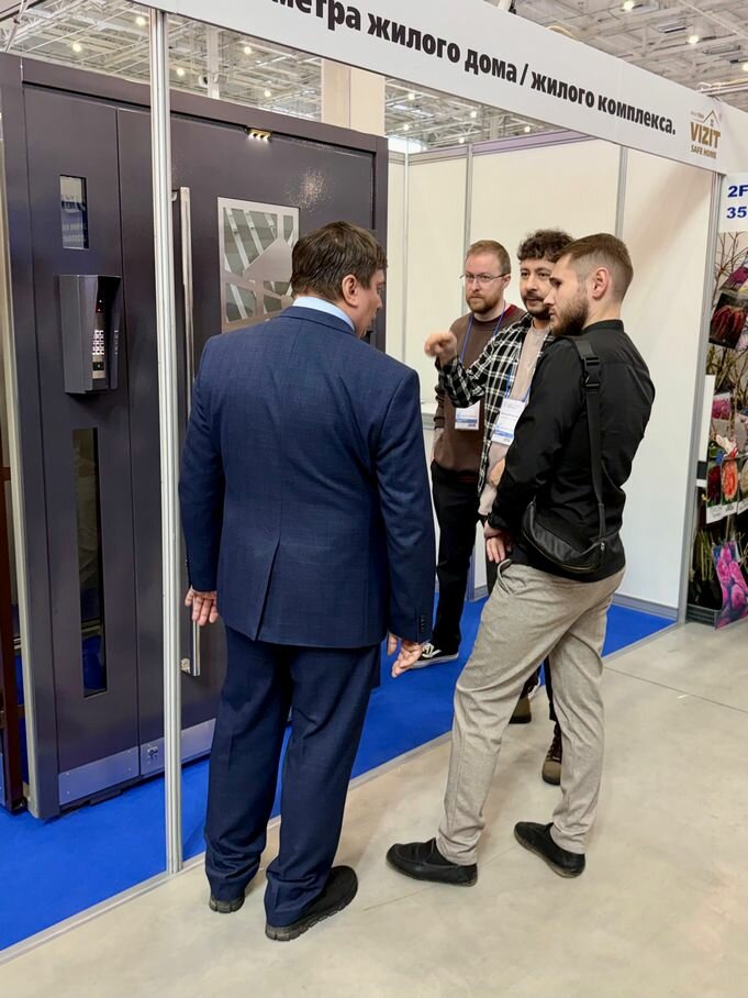 Посетителям стенда были представлены металлоконструкции периметра ТМ "VIZIT" - металлические двери, калитки входа на территорию, стойки для домофонов и считывателей, дверные доводчики и электромагнитные замки.