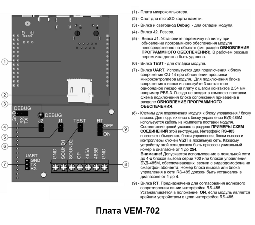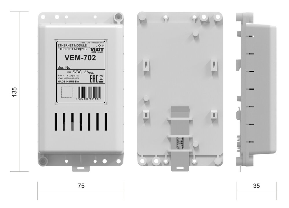 Ethernet модуль VEM-702 предназначен для использования в составе видеодомофонов VIZIT совместно с блоками управления домофона БУД-485М, -730, -585, блоками вызова серии 700, блоками управления контроллера ключей КТМ685(Р), 606, 608(Р), блоками коммутации БК-502 и обеспечивает интеграцию видеодомофона с облачным сервисом провайдера.