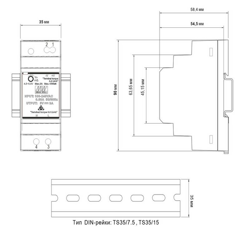 - Монтаж на DIN-рейку