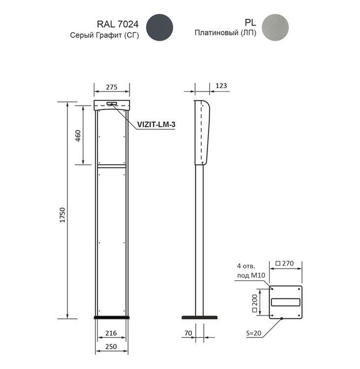 Стойка домофонная VIZIT-ST25-3PG предназначена для установки блоков вызова домофонов VIZIT или других торговых марок.