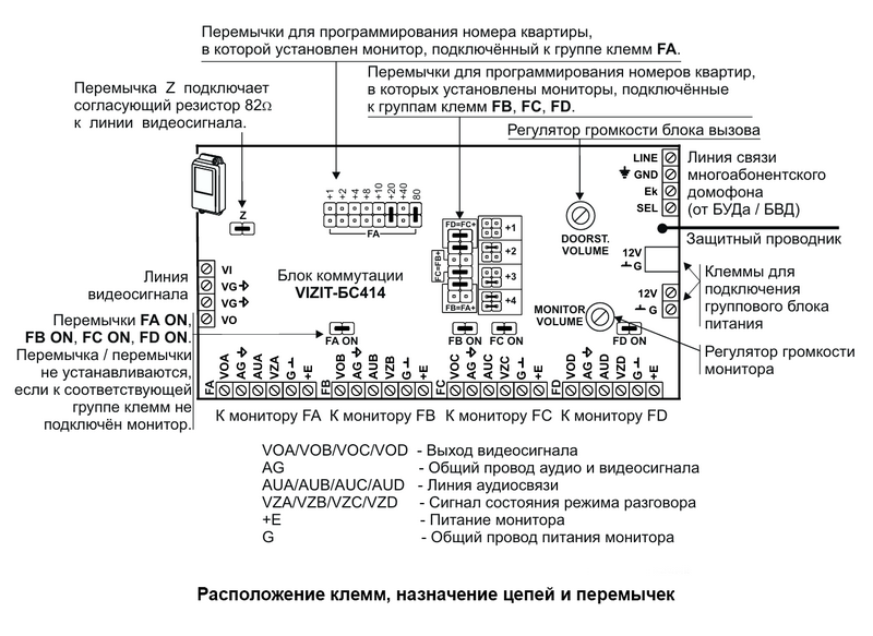 Блок коммутации домофона VIZIT-БС414 используется в составе многоквартирных домофонов VIZIT и предназначен для коммутации линии связи подъездного видеодомофона и мониторов Модель:705Е5 или подобных (до 4-х квартир), а также для подключения мониторов к линии видеосигнала и групповому блоку питания. Рекомендуется использовать блок питания WM/12V/1.5A.