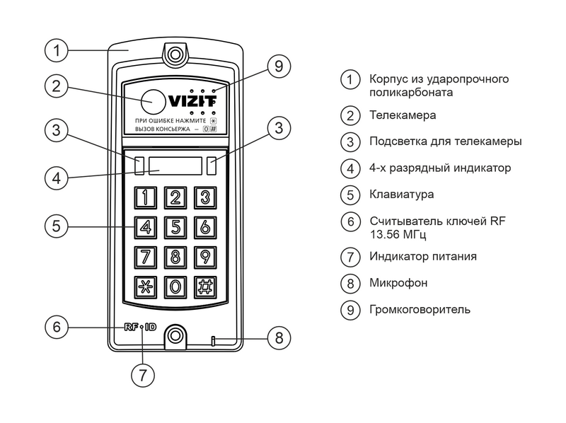Блок вызова БВД-317FCBW используется совместно с блоками управления БУД-302х, БУД-430х, БУД-485x как составная часть многоквартирного домофона VIZIT