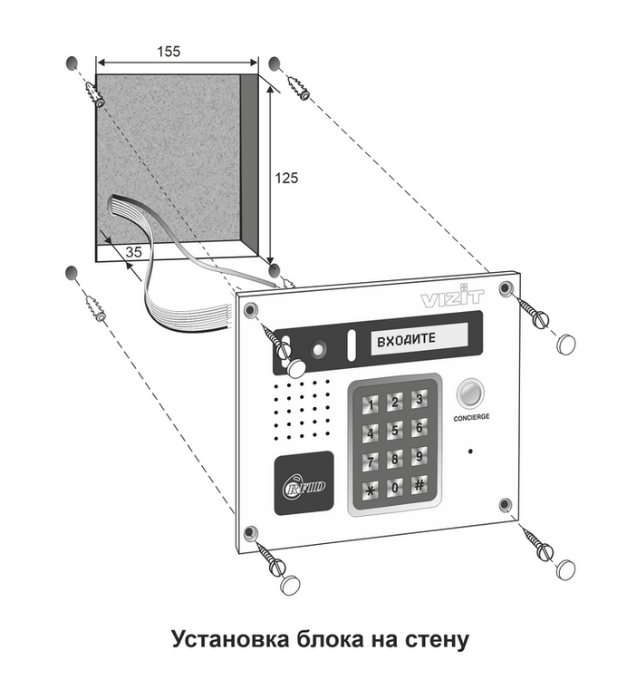 Для защиты блока вызова от атмосферных осадков при врезном монтаже рекомендуется использовать монтажный комплект МK-432, MK-733;