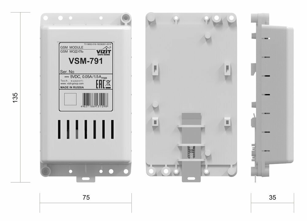 GSM Модуль VSM-791 предназначен для использования в составе многоабонентских или индивидуальных домофонов VIZIT вместо или совместно с абонентским устройством для дублирования вызова с домофона на мобильный телефон абонента данной квартиры.